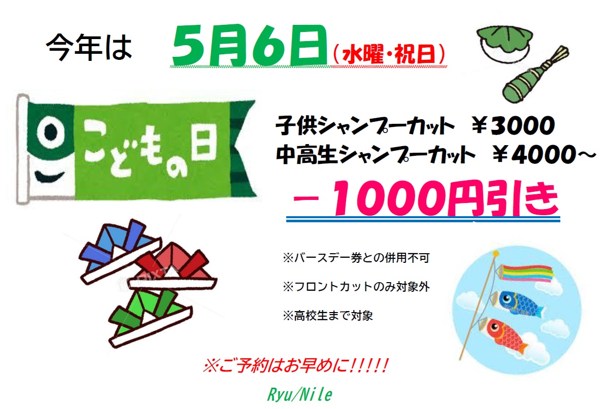 【こどもの日】今年は5月6日(水・祝)1,000円引き